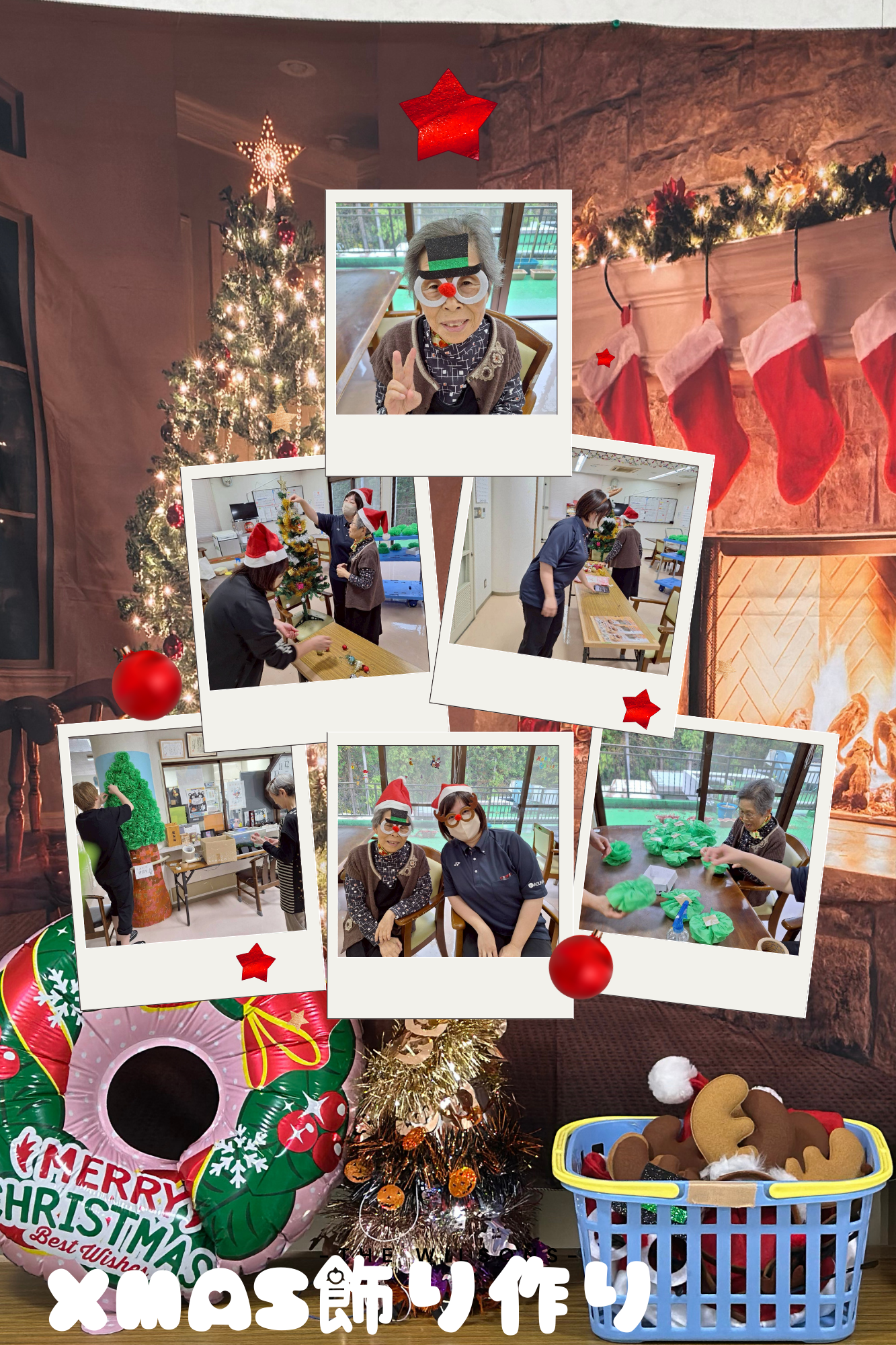11月 27日 ケアハウス Xmas飾りづくり 11月27日、館内が一気にXmas色に染まる、飾りづくりを行いました。 サンタ帽をかぶったり、おもしろ眼鏡で写真を撮ったりと、笑い声があふれるひとときに。 ツリーの飾りつけや壁面の大きなXmasツリー作りなど、皆さま手際よく、楽しそうに取り組まれていました。 『ここに飾ったら綺麗よ。』『この色かわいいね。』などと相談しながら作る時間も良い交流の場になりました。 今年のXmas会は、12月23日に予定しています。 手作りの飾りが並んだ温かい雰囲気の中で、素敵なクリスマスを迎えられそうです。 ← 前の記事